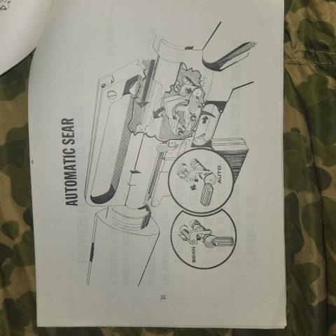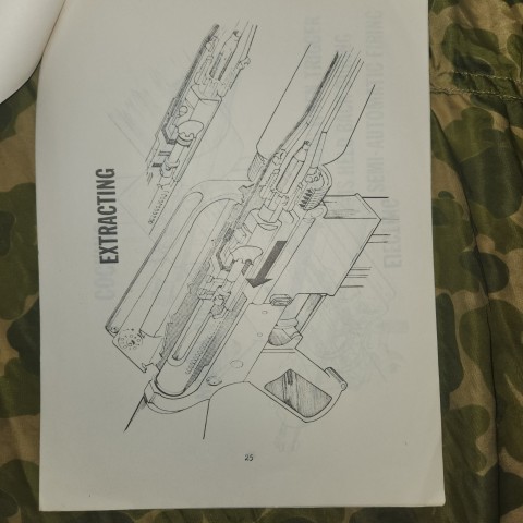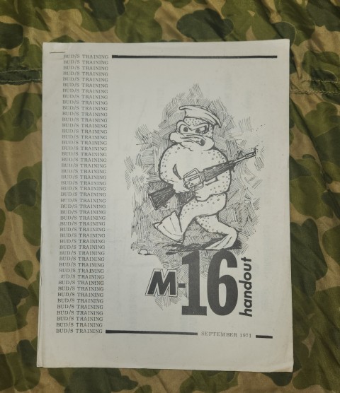 This is a really cool, rare manual / handout from the estate lot of our SEAL CDR. This 40 page "manual" was a handout given at BUDS to introduce SEALS to the "new" M16 rifle. September 1971 dated. The manual covers parts, operation and trouble shooting with basic parts groups diagrams, etc. This information is all covered in other TM's etc. BUT this was put together in a simple, easy to digest reference handout for SEALS and used in BUDS training. It is not bound and is a simple paper issue with a single staple in the top corner. Unique cover art as well. Overall VG+ to EXC- used condition. It is a paper item that has seen use and shows wear and shows it's age. In the realm of M16 retro collecting as well as SEAL items, this is a cool piece!