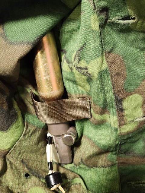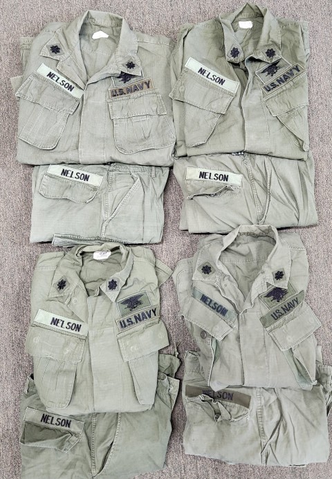 This particular coat is in nice used condition. It is a Green Dominant Grenadier's version in size Small Long. The coat has the inflator cartridge present. The padded inserts that covers the inflator was removed (the seam along the bottom of the flap is open) and there is one beltloop on the rear that is loose at the top. Other than that, this coat is is fine used condition. This is from the estate of a career SEAL officer who graduated from the United States Naval Academy in Annapolis and who served on SEAL TEAM 2 in the early to mid 70's. A nice example of a desirable model, especially with the XM148 clones that have hit the market. Binder and uniforms not included, but shown as they are from the same estate lot.
