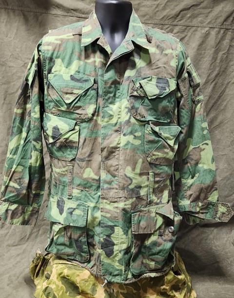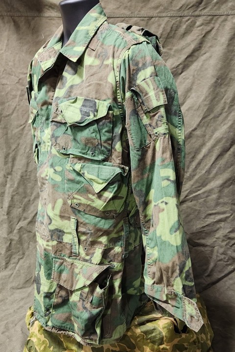 If you are a fan of Navy SEAL history in Vietnam, you know about the "Float Coats" that were made in the early 70's. The idea was to create a purpose specific load bearing coat that included a flotation device and pockets for magazines. There were three variants made: Rifleman, Radioman and Grenadier. In 1970 there were only 1200 total coats made: 600 Rifleman and 300 each Radioman and Grenadier. The coats were also made in both Green and Brown dominant ERDL.