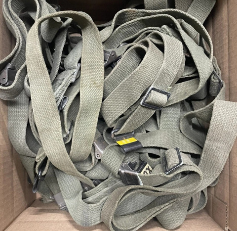OD Cotton M-1 Rifle Sling, Very Good Used. These are original M1 slings as used on the M-14 and M-16 rifles. The friction buckles are the late WWII / Post WWII style so perfect for Korea and Vietnam. Slings are in solid condition with good color and hardware and plenty of life left. Not everyone wants a mint looking sling on their rifle!